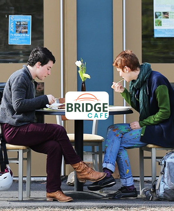 Located on the second floor of the Robert Crown Center (RCC), the Bridge Café is the campus quick-service location. The name is taken from the bridge that connects the Harold F. Johnson Library's Airport Lounge and the Robert Crown Center. Offerings include made-to-order items, prepared to-go meals, sweets, ice cream and more.